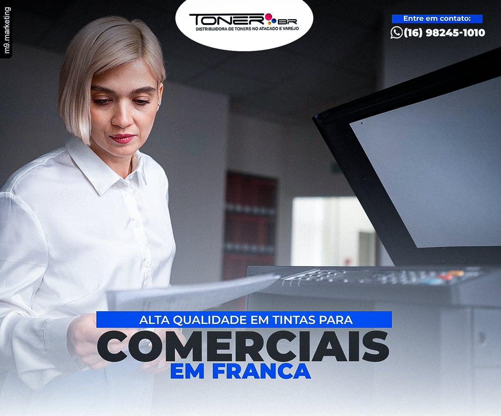 Empresas que buscam qualidade em cada impressão precisam contar com tintas que garantam desempenho profissional. Na Toner BR, em Franca, oferecemos tintas de altíssima qualidade, desenvolvidas para proporcionar impressões com cores vivas e detalhes precisos em cada documento. Nossas tintas são ideais para quem não abre mão da excelência visual em materiais como relatórios, propostas e apresentações. Além de uma qualidade de impressão superior, nossa linha de tintas é compatível com diversos modelos de impressoras, o que significa que temos a solução perfeita para o seu negócio, independentemente do equipamento utilizado. Na Toner BR, nossa equipe está sempre pronta para ajudar a escolher a melhor tinta para atender suas demandas e assegurar que cada página impressa exiba nitidez e cores intensas. Se você deseja elevar o nível das suas impressões, faça uma visita à nossa loja em Franca ou entre em contato pelo (16) 98245-1010. Descubra como nossas tintas de alta performance podem transformar a imagem do seu negócio.