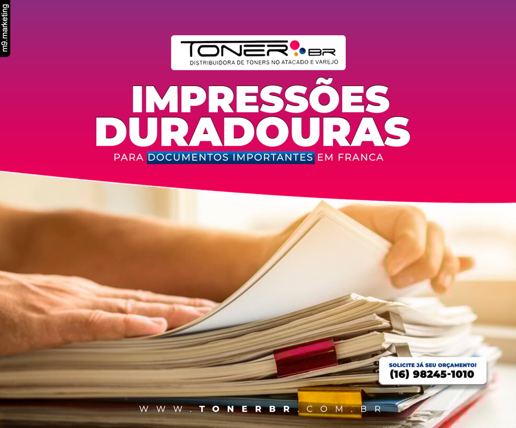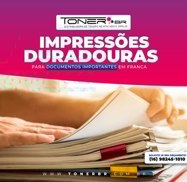 Documentos importantes exigem uma qualidade de impressão que resista ao teste do tempo. Na Toner BR em Franca, nossas tintas são formuladas para oferecer não apenas durabilidade, mas também resistência superior a desbotamentos e manchas. Ideal para contratos, arquivos e documentações importantes que precisam manter sua legibilidade e integridade por anos. Conheça mais sobre nossas soluções de tinta de alta durabilidade que podem ajudar seu negócio a manter registros precisos e profissionais por muito tempo.