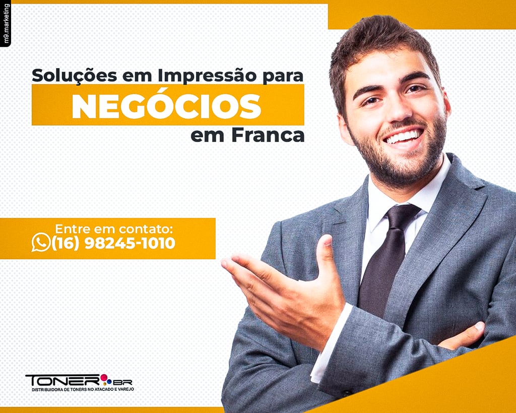 Empresas, escritórios e escolas em Franca precisam de soluções de impressão que combinem eficiência e economia. Seja para contratos, relatórios ou materiais didáticos, a qualidade das impressões reflete diretamente no profissionalismo do seu negócio. A Toner BR oferece suprimentos de alta performance para impressoras a laser, com destaque para nossos toners compatíveis. São produtos que garantem impressões nítidas e consistentes, mesmo em grandes volumes. Além disso, nossa equipe está pronta para orientar você na escolha do melhor toner para suas necessidades. Conte com a Toner BR para elevar a qualidade das suas impressões. Entre em contato pelo (16) 98245-1010 ou visite nossa loja e conheça nossas soluções!